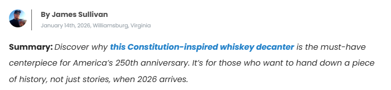 Today, it sits on my desk filled with my favorite small-batch bourbon. And every pour feels less like serving a drink… and more like honoring a 250-year journey.