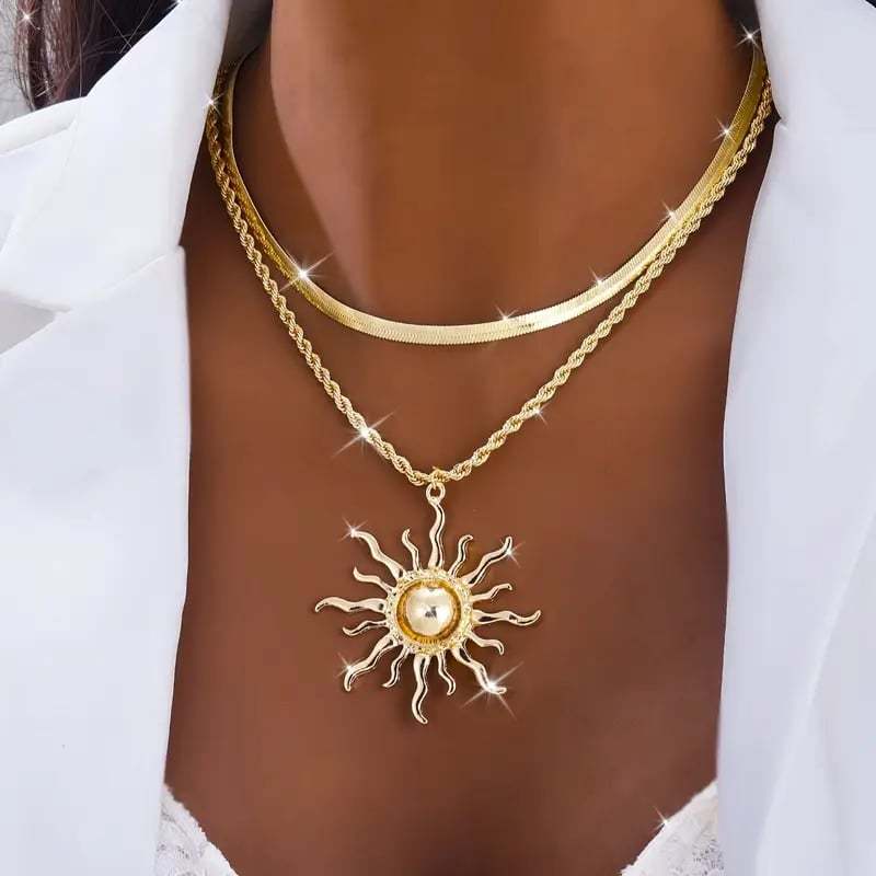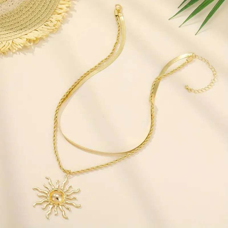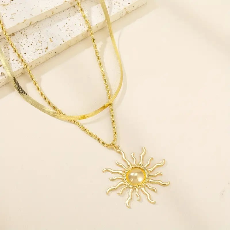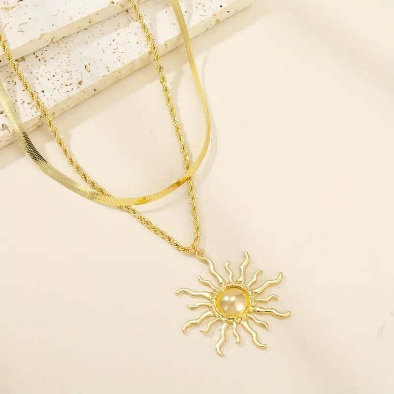 🌞 Elegant Double Layer Sun Flame Necklace