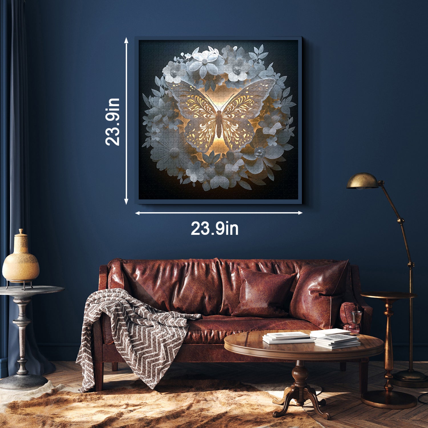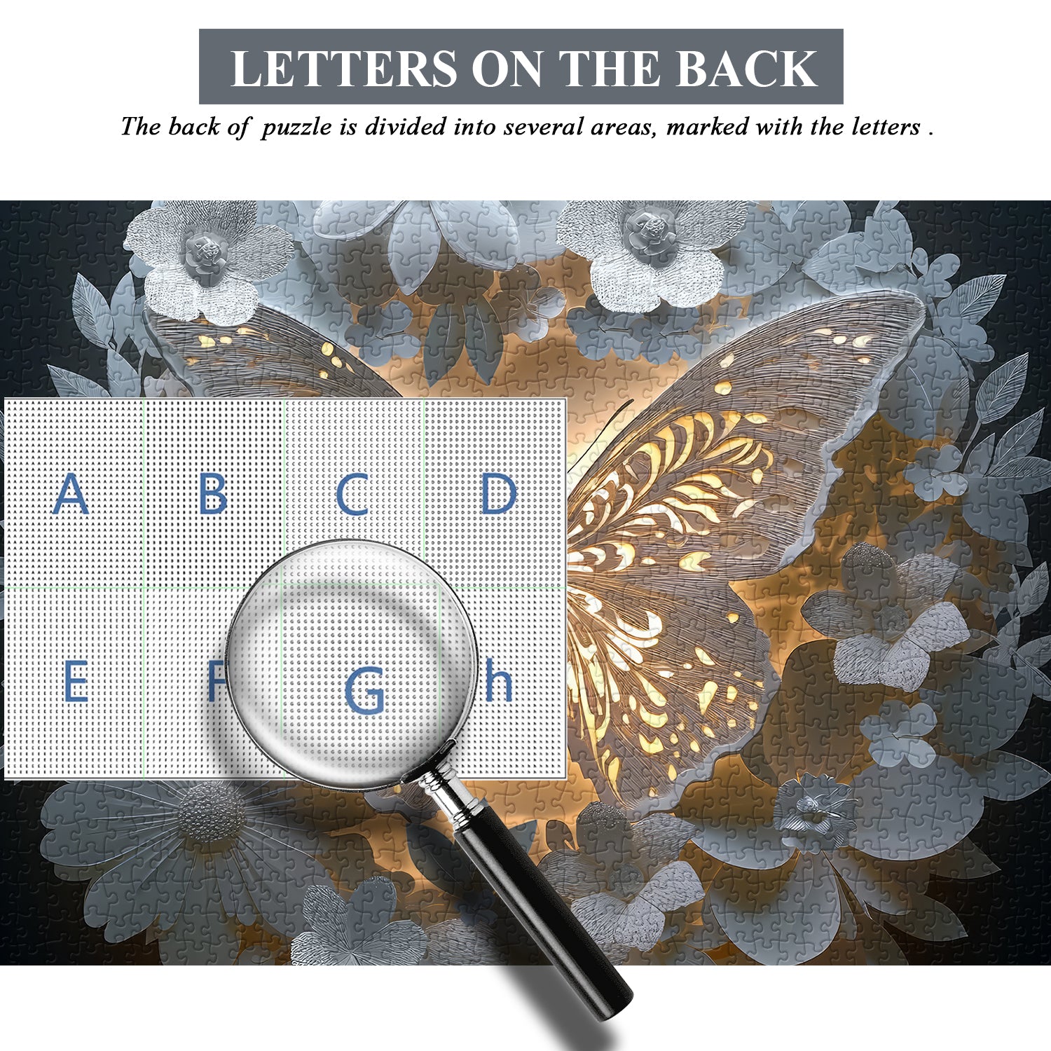 Elegant Design: This 1000-piece puzzle features a mesmerizing butterfly surrounded by a circle of intricate floral patterns. The soft glow effect in the design adds a magical and calming aesthetic, making it a perfect artwork once completed.